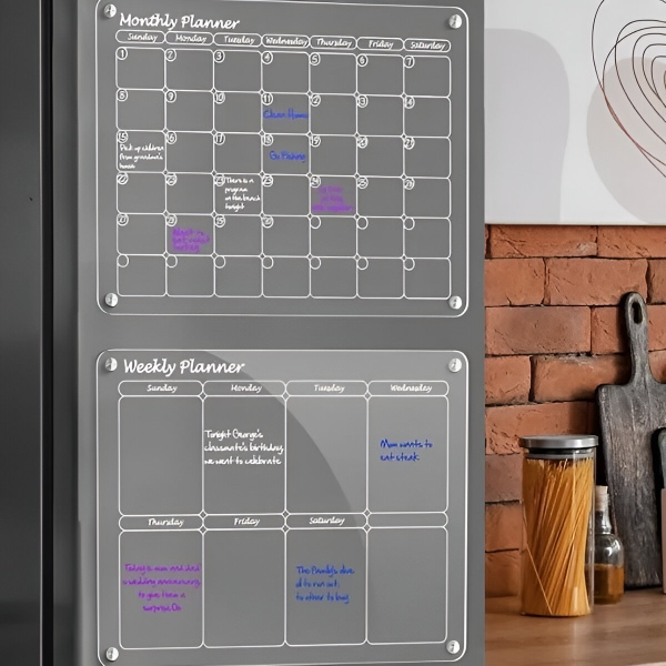 Jääge organiseerituks meie elegantsete külmikukalendritega – ideaalne tööriist kiireid majapidamisi silmas pidades! See sisaldab kuu- ja nädalaplaane, et ajakava saaks hõlpsasti hallata.