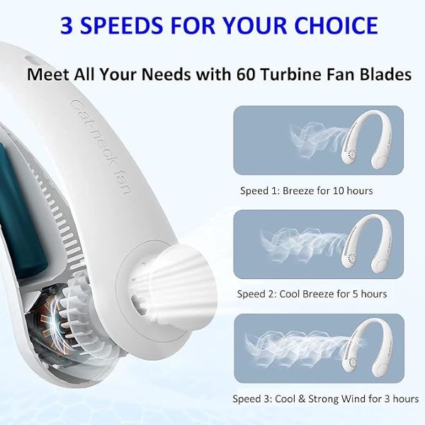 Ventilaator pakub käed-vabadust, kuna see ripub mugavalt kaela ümber. See praktiline seade hoiab teid kuumadel päevadel ja õhtutel jahedana ja värskendavana.