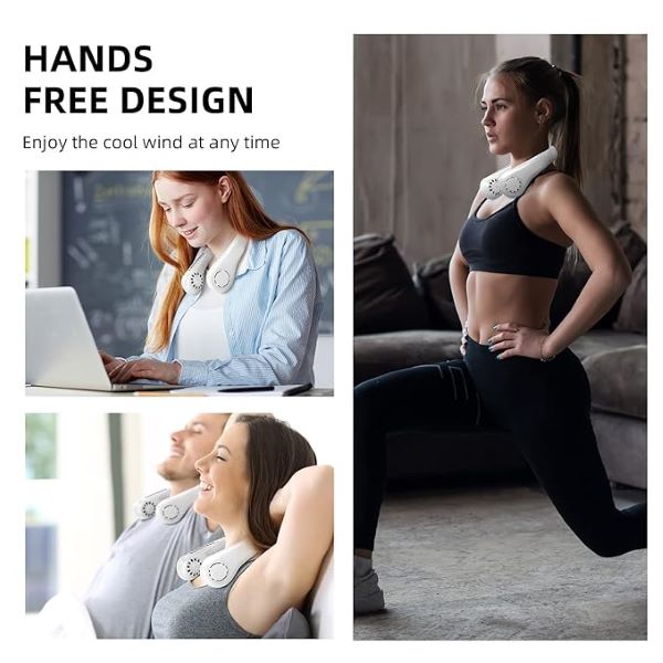 See ainulaadse õhuväljundi kujuga kaelaventilaator on uudne lahendus jaheduse hoidmiseks, ilma et teie käed oleksid hõivatud.