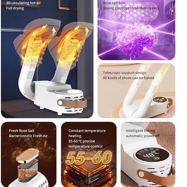 Jaotab soojust ühtlaselt, kuivatades jalanõud ilma ülekuumenemise või materjalide deformeerumiseta.